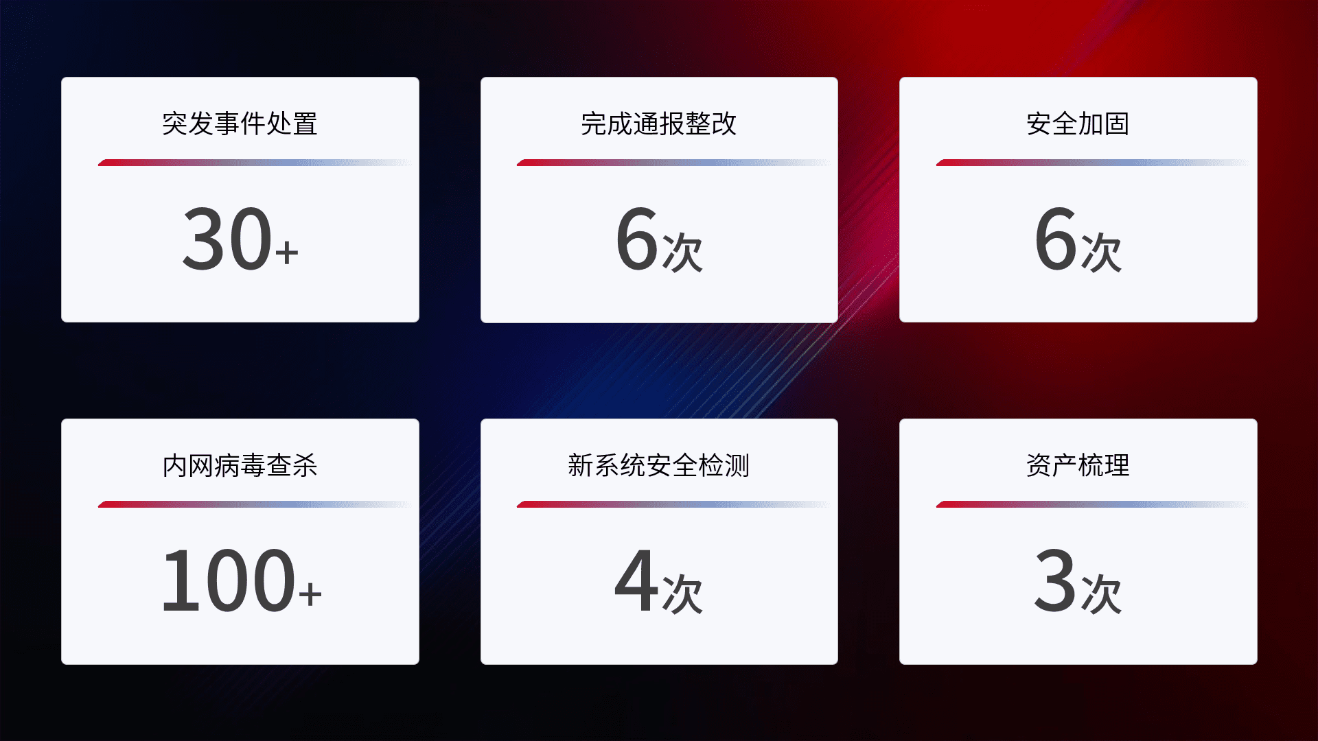 根据客户需求定制整改方案,,,,强化应急演练,,,,提升网络安全事件应对能力。。。